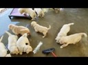 Jasper is a Dark Golden; Parents - no health problems in our full Dark Golden lineage; boxy heads; bred with Maximus for a somewhat smaller leaner frame, darker coloring, the long flat silky coats with about half the shedding of the english creams. She produces pups with a mellow disposition and obedience oriented temperament and trainability. Jasper is one of the sweetest goldens we’ve ever had; is about 60 pounds; easily trained also for hunting & obedience